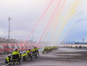 最後に消防団の秋季点検で頑張った放水の様子を